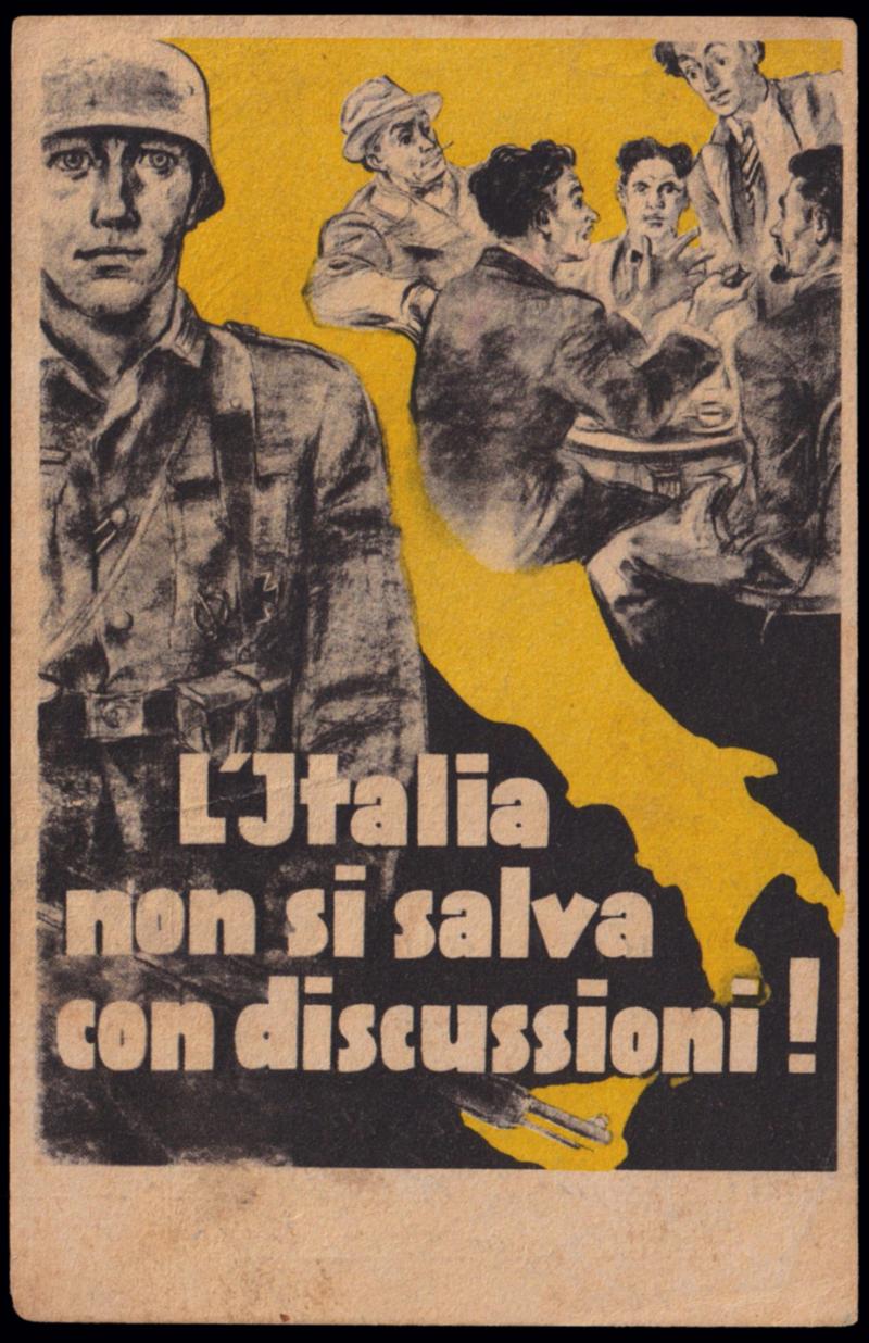 1944 ALLEANZA ITALO - TEDESCA. L'Italia non si salva con le discussioni, viaggiata il 16/3/44 (Arrasich 20). (Image)