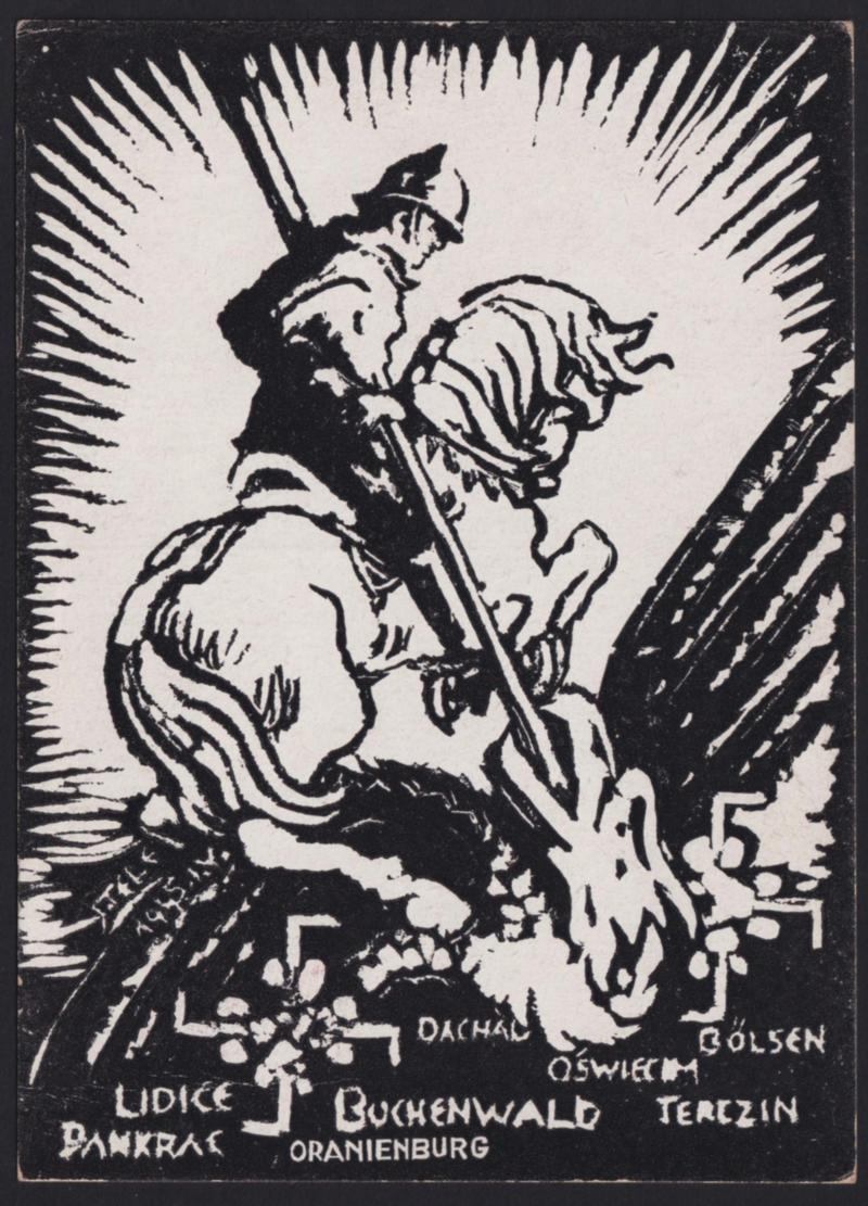 PROPAGANDA ANTINAZISTA CECOSLOVACCA. Cartolina monocroma "Zrozeni jsmebez okovu..." Siamo nati senza catene, nuova. Ex collezione Egidio Errani. (Image)