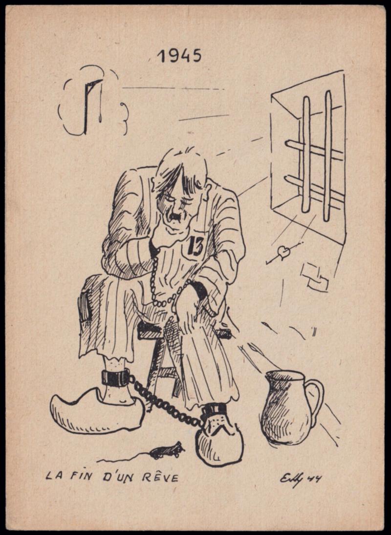 PROPAGANDA ANTINAZISTA FRANCESE. Cartolina LA FIN D'UN REVE, nuova. Ex collezione Egidio Errani. (Image)