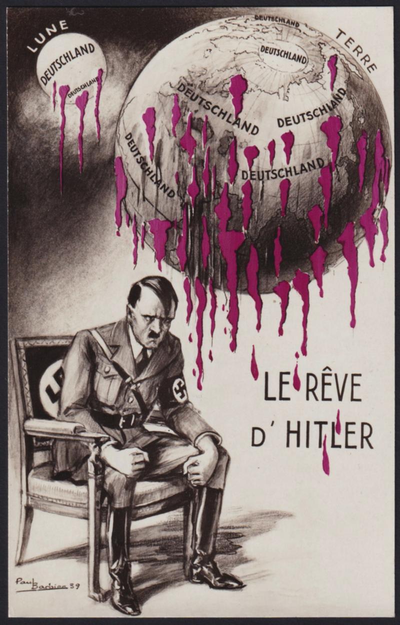 PROPAGANDA ANTINAZISTA FRANCESE. Cartolina su carta fotografica LE REVE D'HITLER, stampata in Francia. Ex collezione Egidio Errani. (Image)