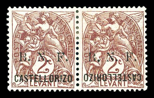 N°2ba, 2c brun lilas, CASTELLORIZO renversé tenant à normal. TTB Qualité: * Cote: 440 euros (Image)