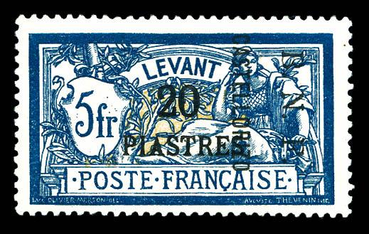 N°13c, 20 pi sur 5f bleu: Double surcharge. SUPERBE. R.R. (certificats) Qualité: * Cote: 2100 euros (Image)