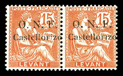 N°19c, 15c vermillon: Sans point sur le 'i' de Castellorizo + 'F' cassé, tenant à normal. TTB (signé Scheller) Qualité: * Cote: 240 euros (Image)