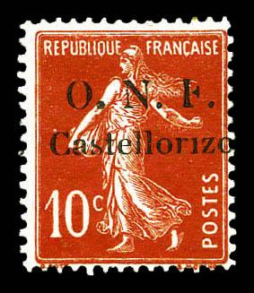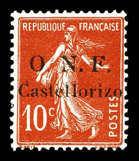N°28c, 10c rouge: Sans point sur le 'i' de Castellorizo + 'F' cassé. TTB (signé Scheller) Qualité: * Cote: 290 euros (Image)