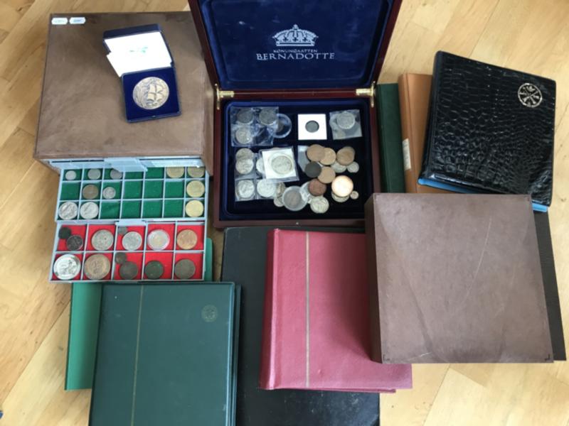 Sweden, Box with 1000s of coins mainly copper and nickel old–modern in e.g. nine binders and two Lembit coin boxes incl. some better. Also other countries incl e.g. 12 Finland 20 Markka 1934–1939, some medals, forgeries, etc. Approx. 29 kg.