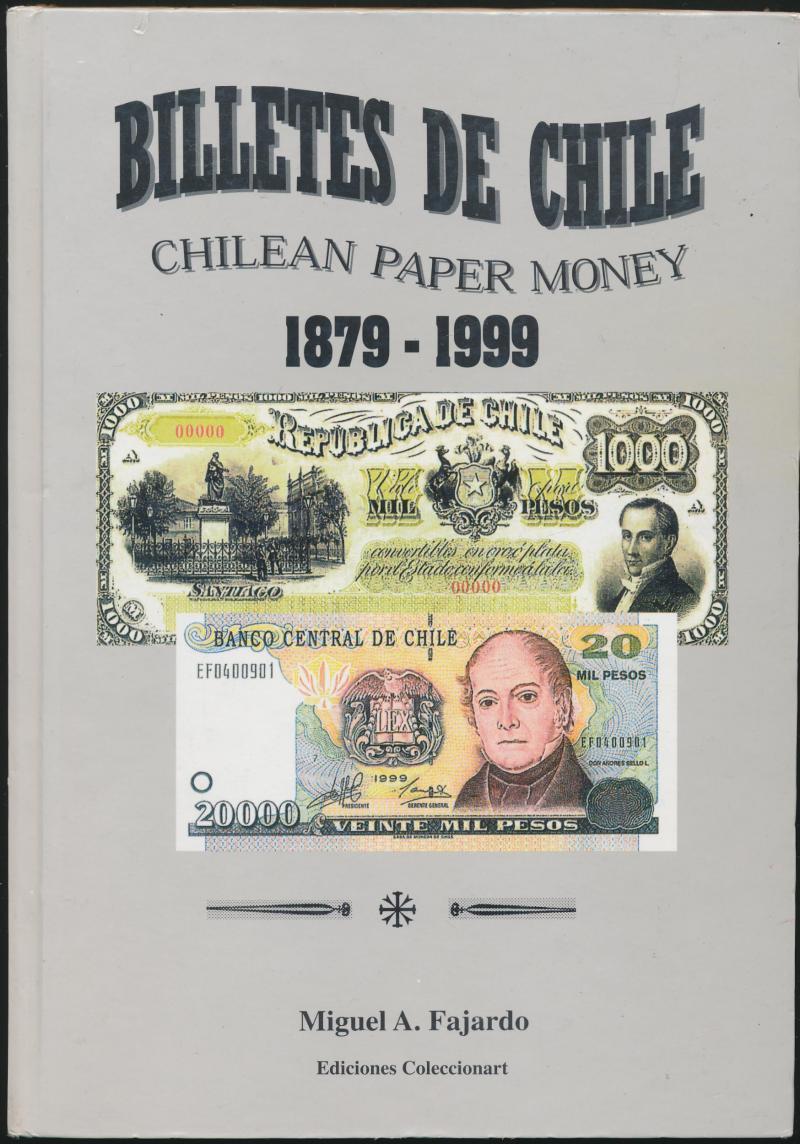 CHILE: 'Chilean Paper Money 1879-1999' by Fajardo h/b colour 118pp; 'Billtes De Chile Dos Siglos De Historia E Imagenes' (2011) h/b 461pp, plus spiral bound priced catalogue; 'La Emision De Dinero En Chile' (Collection of the Central Bank Chile) h/b 236pp, and 'Iconografia Monedas Y Billetes Chilenos' h/b 189pp, (both in Spanish and English); all in colour, condition all very fine. Weighs 7kg.