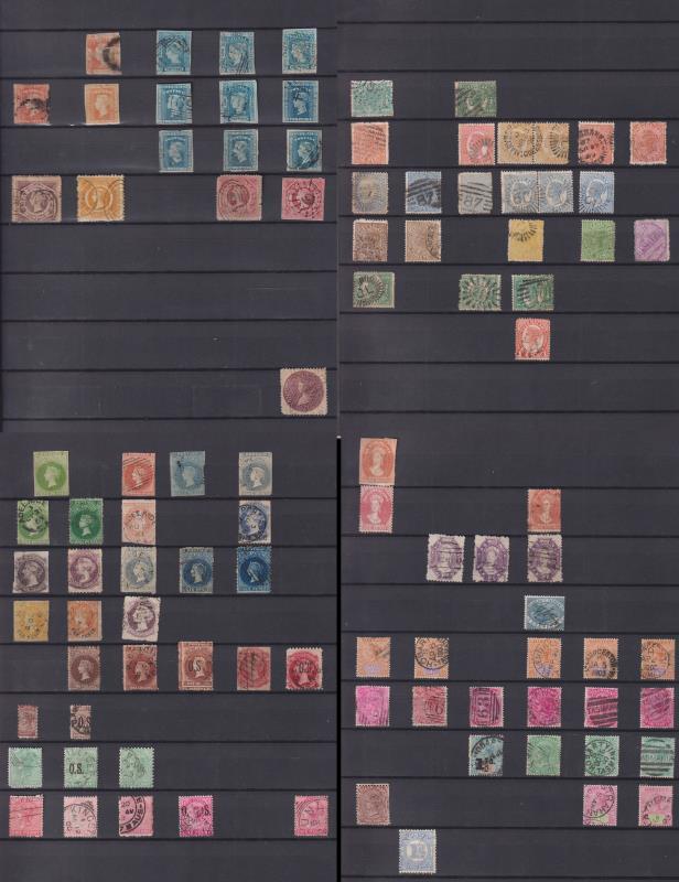Australian States mostly c1880-1910 useful used seln of 375v, with dupn & various revenues also present. NSW 97v cat £425+; QLD 51v cat £58; SA 58v (incl SG 1, damaged & not counted in cv) cat £635+; TAS 47v cat £250+; VIC 92v (incl 1882 1d yellow-green SG 209 with angled double perfs) cat £320+; & WA 30v cat £53. SG simpl cat approx £1750. (Image)