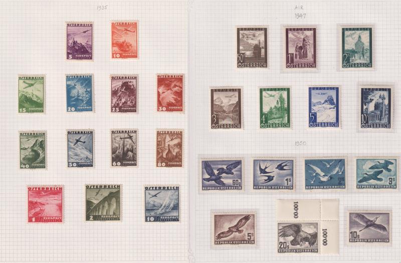 Austria 1850-1965 mint & used colln with 1935 & 1950 Airmails, mint. 715v & 3 covers on 57 pages. (Image)