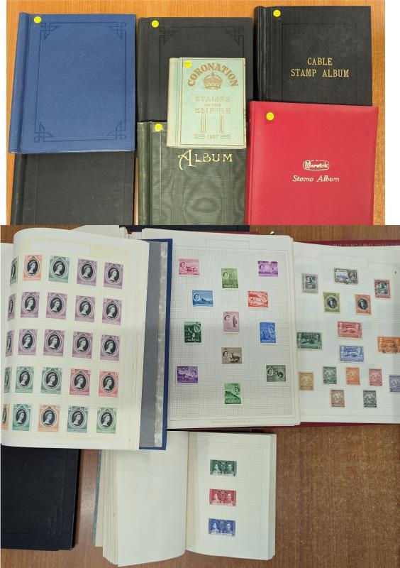 British Commonwealth c1880s-1980s collns on pages, many sets but many short sets. Noted 1937 Coronation Omnibus complete mint (except no Newfoundland Alt set - this in special album), some minor tone, Pacific Isl, Singapore, Canada, etc etc. Several thousands. Weighs 3kg. (Image)