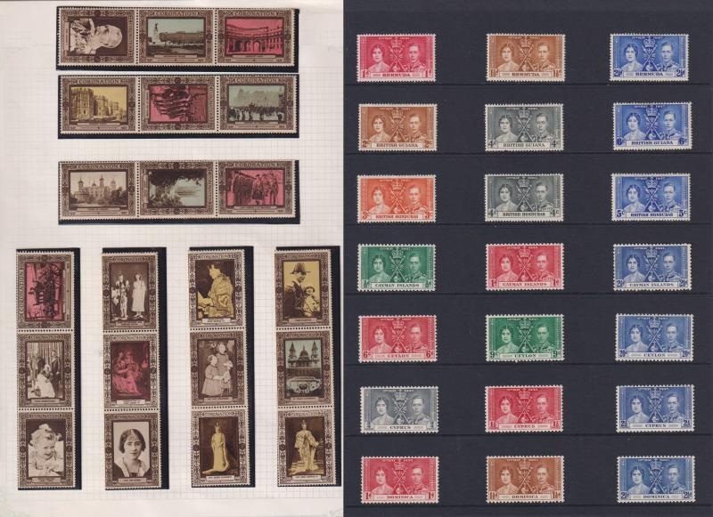 British Commonwealth 1935-49 Omnibus collns: mint sets of 1935 Jubilee, 1937 Coronation, 1946 Peace, 1949 UPU, not complete but good range. Incl 1935 Jubilee for Cyprus, Falklands, Gibraltar, Mauritius, North & South Rhodesia, Virgin Isl etc. SG cat £1280. (Image)