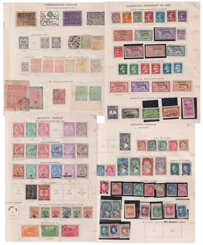 Afghanistan to Albania (foreign) 1871-1935 seln of mint & used on 15 pages. Noted Albania 1914 Skanderbeg set with 7 Mars h/ss mixed mint & FU/CTO (SG 33-8) & 1928 Accession of King Zog I set mint (SG 239-47). SG cat £2400. (Image)
