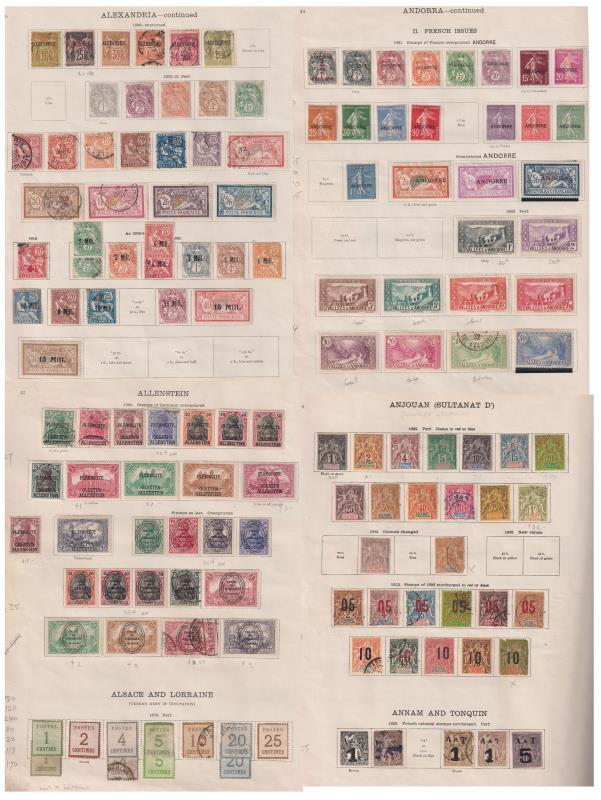 Alexandria to Antioquia (foreign) 1868-1936 seln of mint & used on 23 pages. Noted Andorra 1931 ovpts to 5Fr (excl 75c & 1F50) mint & Antioquia 1868 1p red FU. SG cat £4000. (Image)