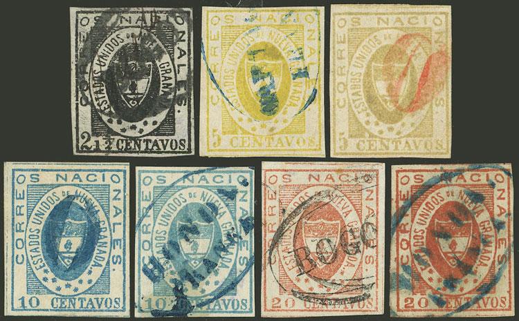 Sc.13 + 14 + 14a + 16 x2 + 17 x2, 1861 the set up to the 20c. value, varied cancels and shades, very fine general quality, catalog value US$1,850 (Image)
