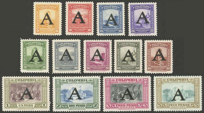 Yvert 175/187, 1950 cmpl. set of 13 values with "A" overprint, mint with tiny hinge mark (they look MNH), excellent quality! (Image)