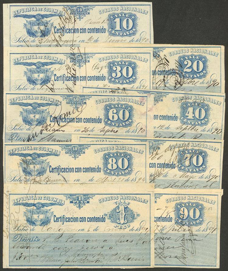 Lot of 24 labels for declared values, 23 are used, in general of fine to very fine quality, HIGH MARKET VALUE, good opportunity! (Image)