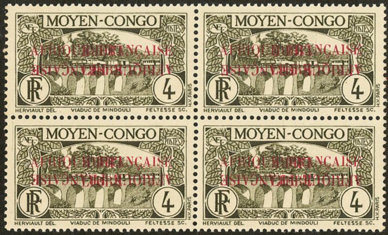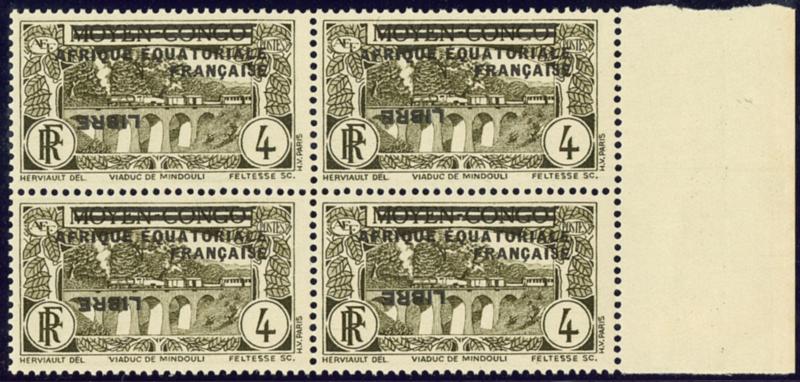 Poste Aérienne. France-Libre. Non émis, surcharge noire sans le "50 fr". Maury 14c, bloc de quatre, se sépare légèrement. - TB. - R (tirage 25, cote Maury : 6000 €) (Image)