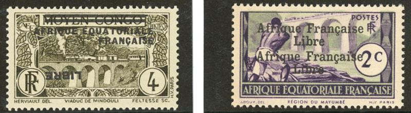 Poste Aérienne. France-Libre. Surcharge renversée. Nos 17, 18, bdf. - TB (Image)