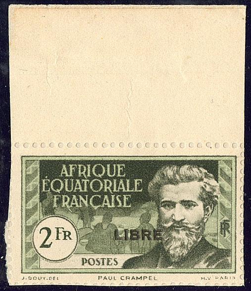 France-Libre. Non émis. 2f noir et vert (Maury 122B), bdf, pos. 4, collé sur support. - TB. - R (tirage 25, cote Maury : 2750 €) (Image)