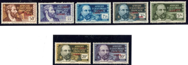 France-Libre. Double surcharge. Nos 131a*, 132a, 134a (def) à 138a. - TB (cote Maury : 990 €) (Image)