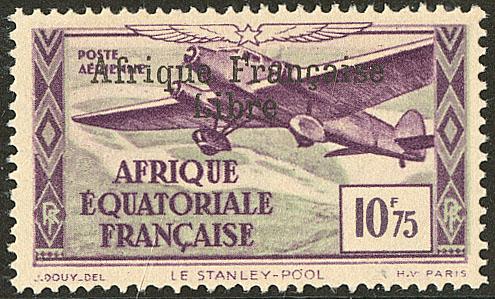Poste Aérienne. France-Libre. Non émis, surcharge noire sans le "50 fr". Maury 14c. - TB. - R (tirage 25, cote Maury : 1500 €) (Image)