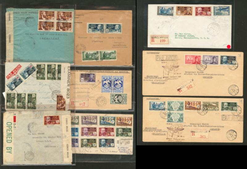 Lot. France-Libre. 1941-1943, 9 enveloppes et une CP entier, affts divers, censures, cachets, obl et destinations, dont recommandées. - TB (Image)