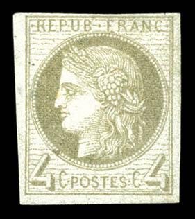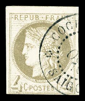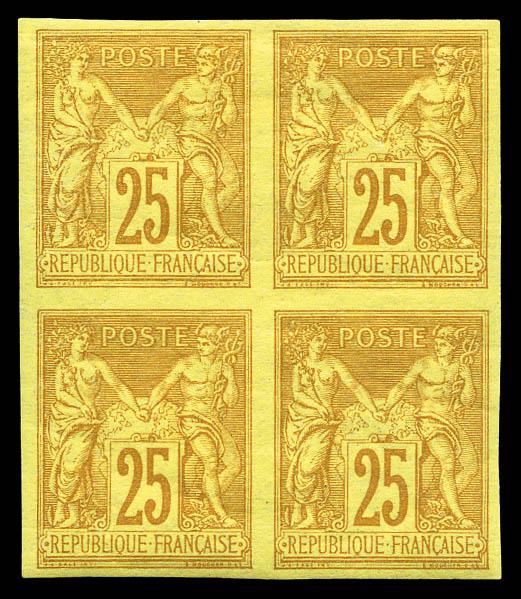 N°44, 25c jaune-bistre en bloc de quatre, très jolie pièce. SUPERBE (signé Brun/certificat) Qualité: * Cote: 4850 euros (Image)