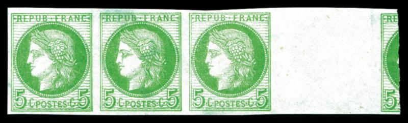 N°17, 5c vert sur azuré, bande de 3 interpanneau avec voisin découpé. SUP. R.R. (certificat) Qualité: ** (Image)
