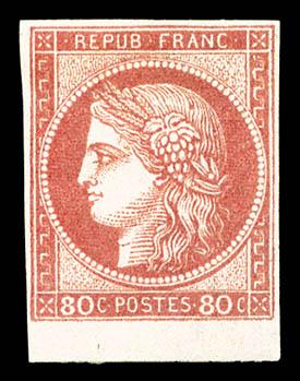 N°21, 80c rose, petit bord de feuille, SUP (signé Brun/certificat) Qualité: * Cote: 800 euros (Image)