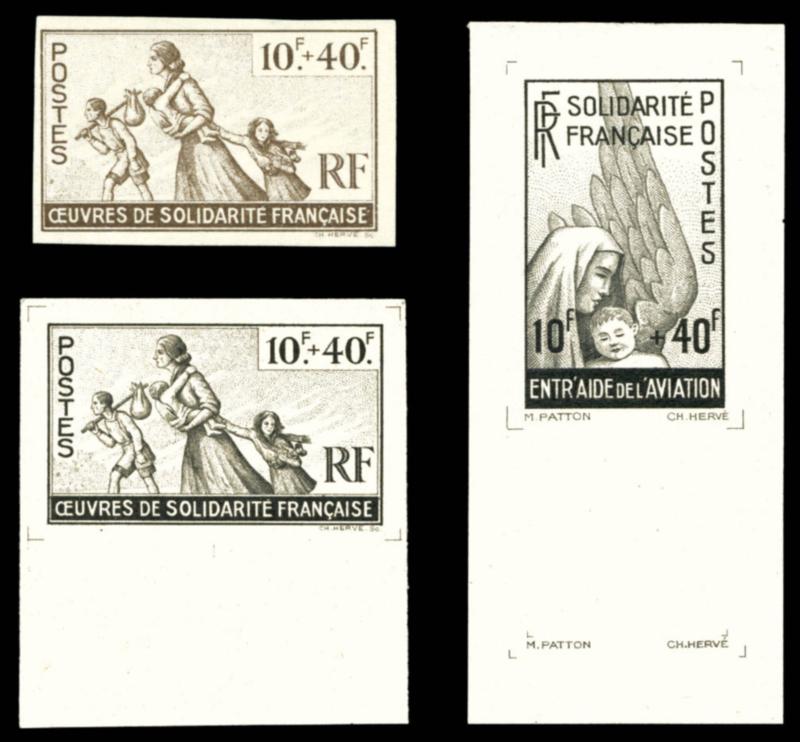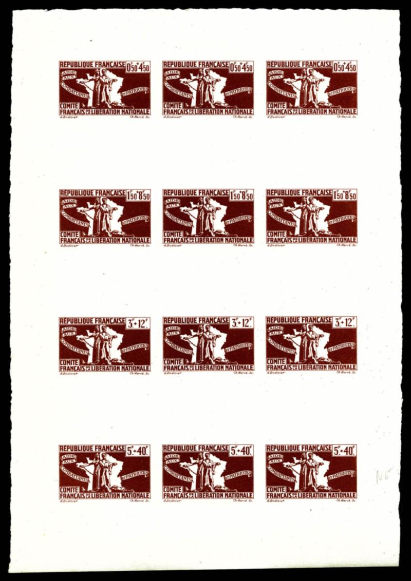 FRANCE LIBRE N°1 à 4: Pour l'aide aux combatant, épreuve collective en marron sur feuillet gommé. SUP. R. (certificat) Qualité: ** (Image)