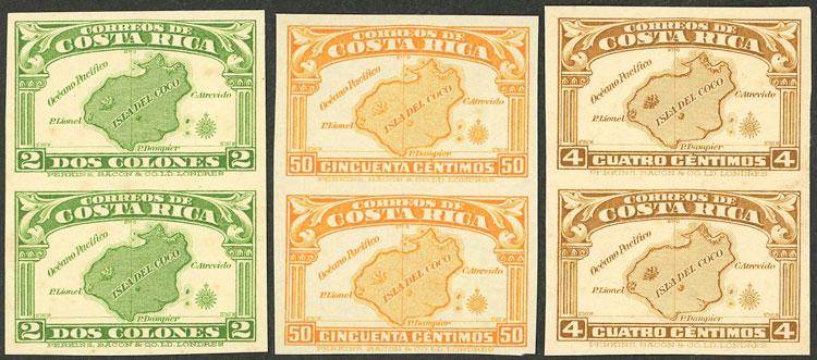 Yvert 164 + 169 + 170, 1936 Cocos Island, 3 IMPERFORATE PAIRS, mint without gum as usual, very fine quality! (Image)