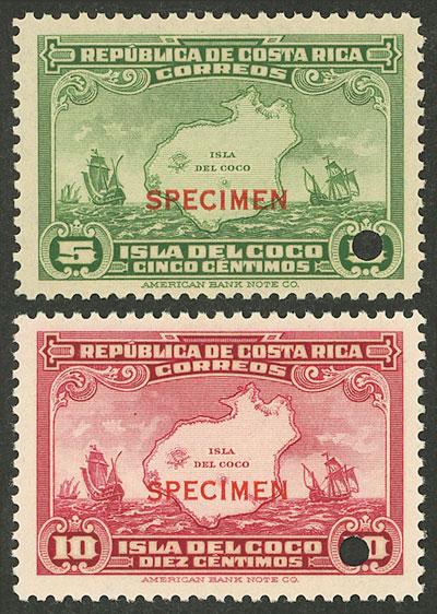 Yvert 172/173, 1937 Cocos Island, the set of 2 values with SPECIMEN overprint and punch hole, excellent quality! (Image)
