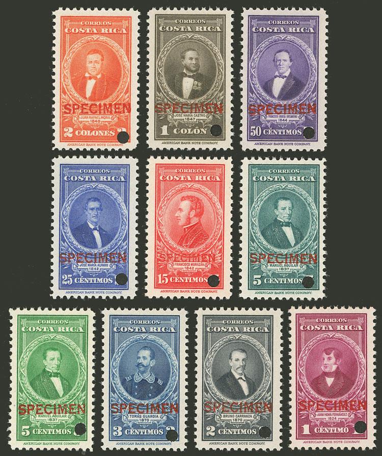 Yvert 215/223, 1943/7 Próceres, complete set of 10 values with SPECIMEN overprint and punch hole, MNH, excellent quality! (Image)