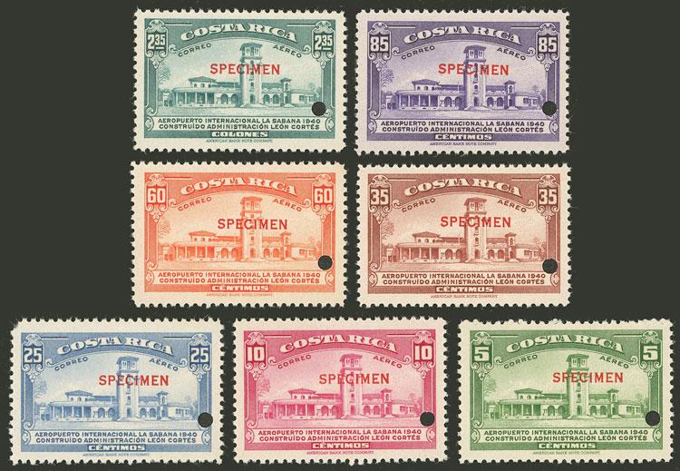 Yvert 38/44, 1940 Airport of La Sabana, set of 7 values with SPECIMEN overprint and punch hole, VF! (Image)