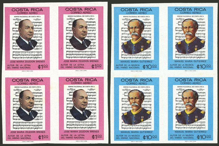 Sc.C788/789, 1980 National anthem, the set of 2 values in IMPERFORATE BLOCKS OF 4, one stamp with minor defect, the rest of VF quality! (Image)
