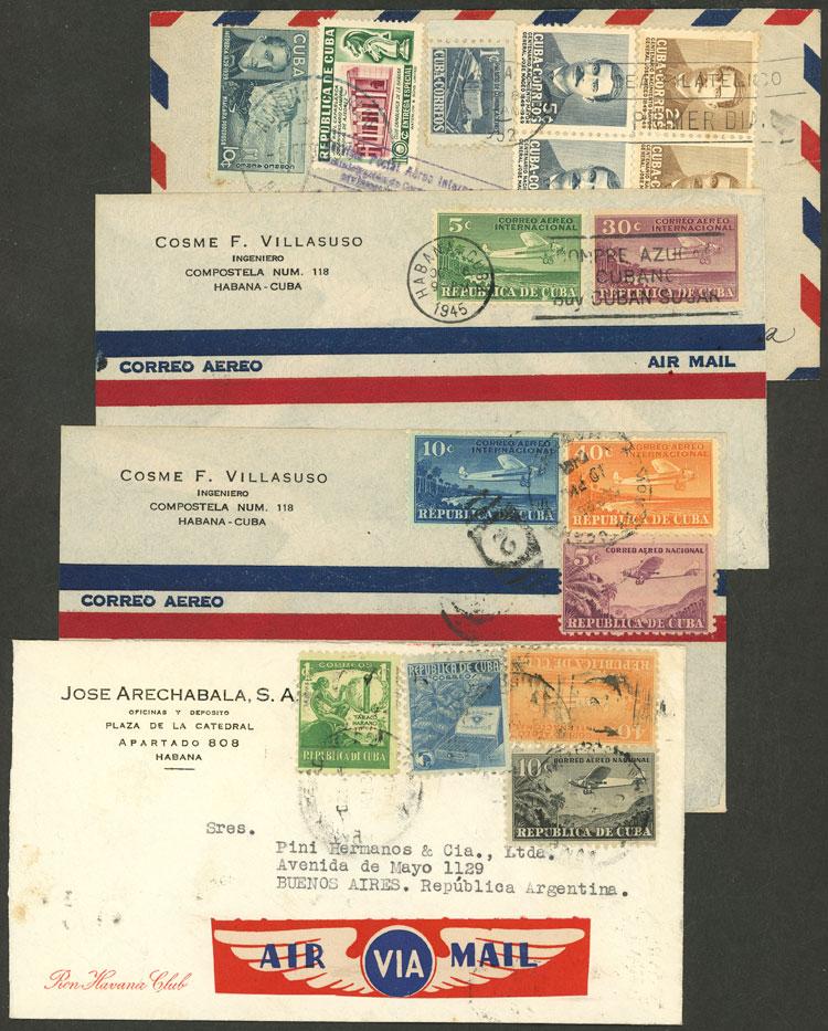 4 Airmail covers sent to Argentina between 1940 and 1952, very fine quality! (Image)