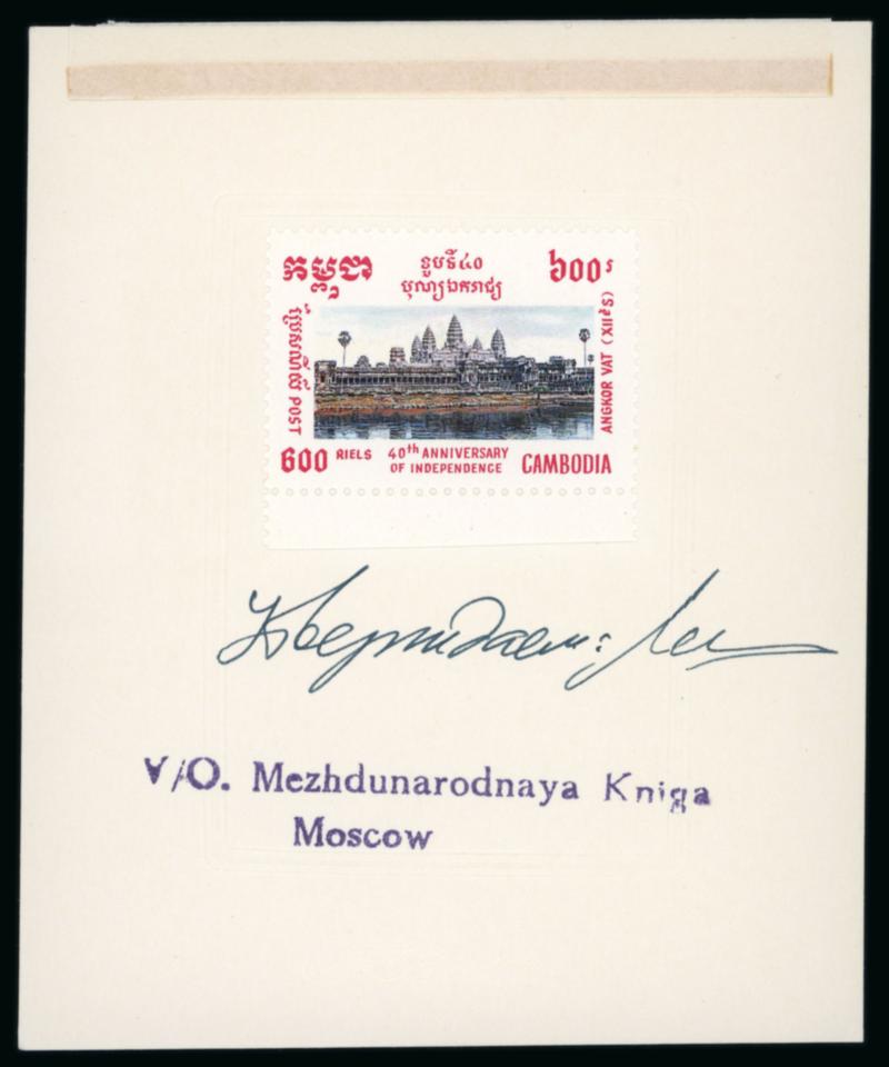 1993 40th Anniversary of Independence 400r, 500r and 600r of an unadopted design, each a bottom marginal mounted on embossed card with signature below and handstamp of printers below this.