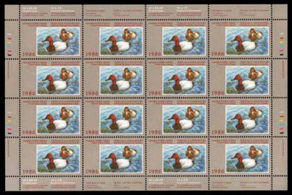 CD2,Canada 1986 Canvasbacks, Pane of 16, XF NH Cat($235) (Image)