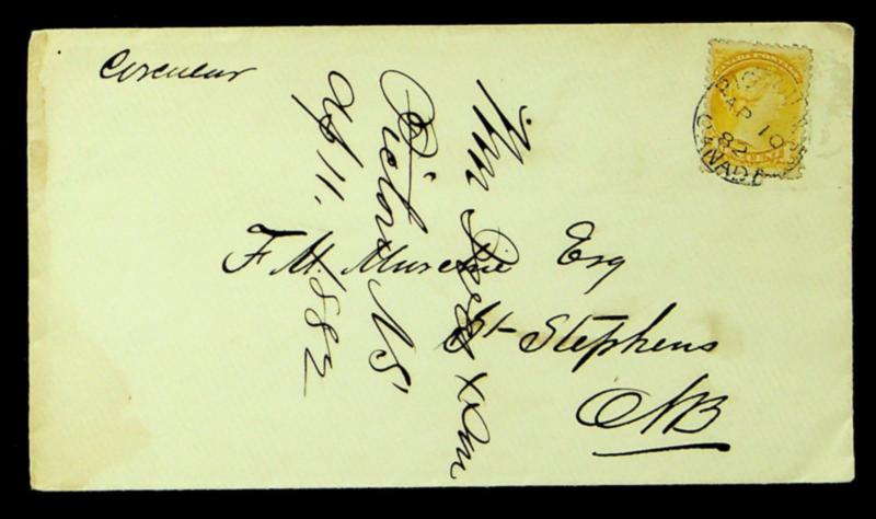 Canada 1882 QV 1c on cover from Pictou NS to St. Stephens NB (Image)