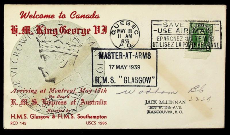 Canada 1939 Visit of KGVI via RMS Empress of Australia Escorted by HMS Glasgow & HMS Southampton, redirected cover (Image)