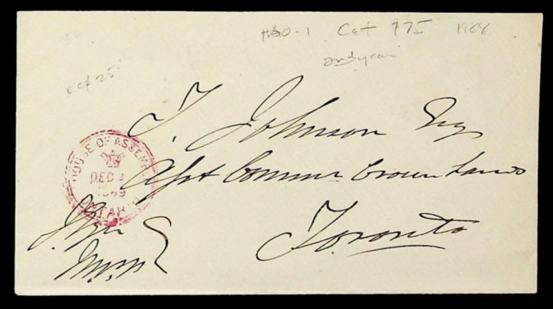 Canada House of Assembly, Ontario official cover to Toronto w/ monogram on flap (Image)