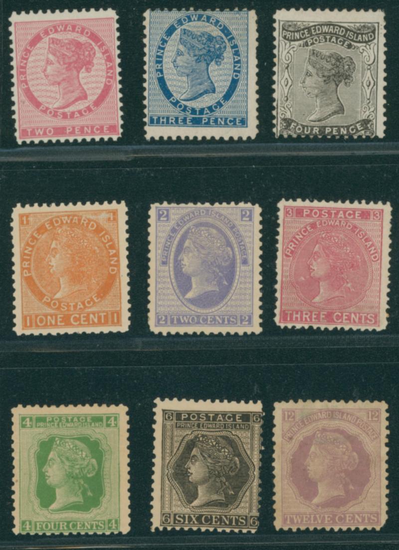 Canada Prince Edward Islands , 9 stamps 1862-68 2p 3p 4p, 1872 1c - 12c, unused hinged, paper attached, catalog value:18,000YEN (Image1)