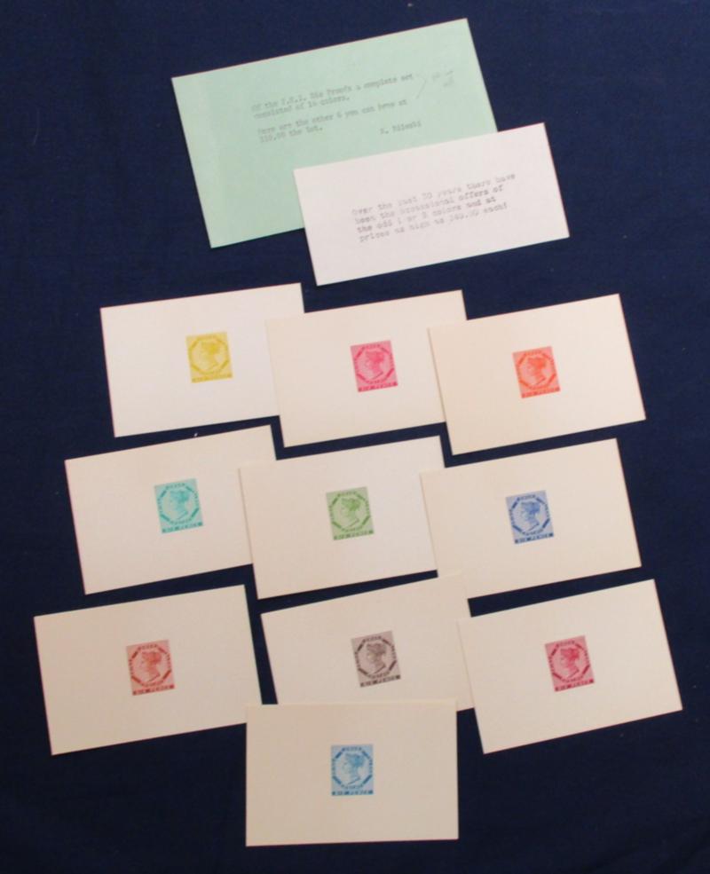 Prince Edward Island Scott 7 Complete Set of Reprint Die Proofs - Complete set of 10 different colorsin pristine condition. Includes Bileski envelope with pencil notes. (UT $200) (Image)