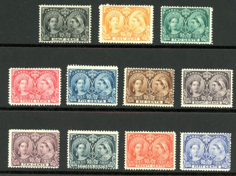 Canada Scott 50-60 Unused, ½¢ through 50¢ Jubilees - Mostly o.g., mostly sound, few hinge remnants. Centering varies from just fine to VF. (SCV $1700) (Image)