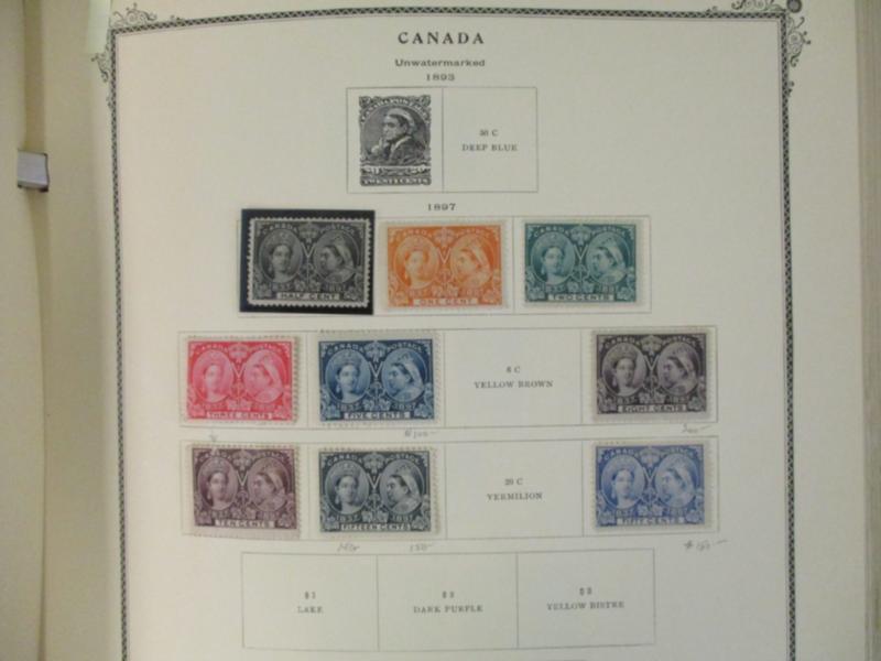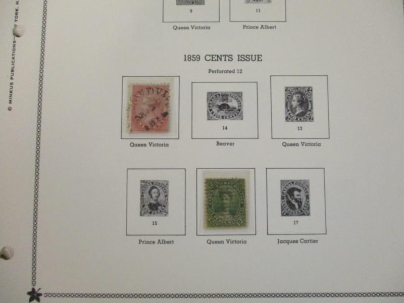 Canada Collection to 1927 on Minkus Pages - Includes several better stamps including used Scott 14, 18, 28-9, and unused Scott 51-3, 56-7, 59, 102 (corner flaw), and 120. Some not counted in overall $1500 SCV (owner's). Mint are mostly MHR. Few back of book. Couple flaws, generally F-VF. (Est $200-250) (Image)