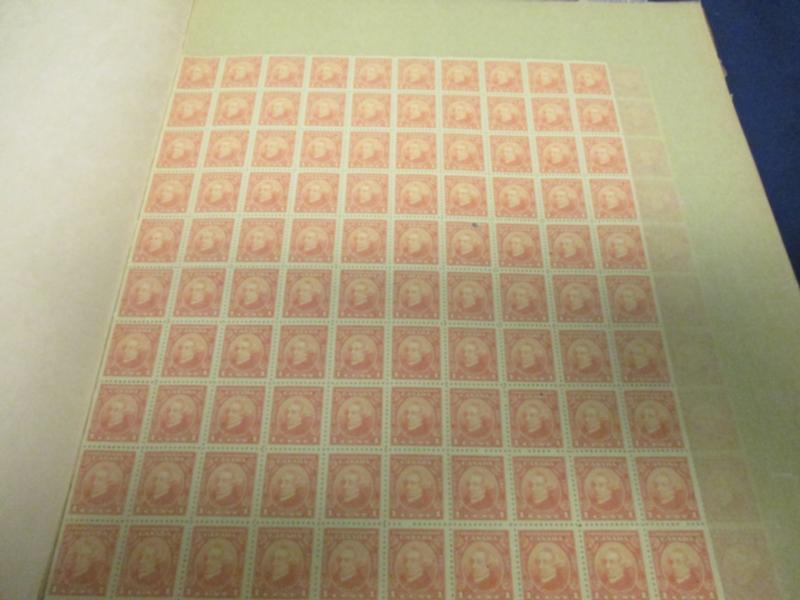 Canada Mint Large Multiples/Sheets - The best is Scott 105, the 1¢ orange Admiral with 3 multiples of 100, and 177 extras in small to large multiples. Then Scott 141 large multiples of 100 (x6), Scott 142 large multiples of 50 (x4). Selvages are typically gone (no plate numbers) and there might be a few flaws. Stamps appear MNH, therefore very high SCV ($40K+), with centering varying from just fine to VF. Offered cheaply. (Est $2000-4000) (Image)