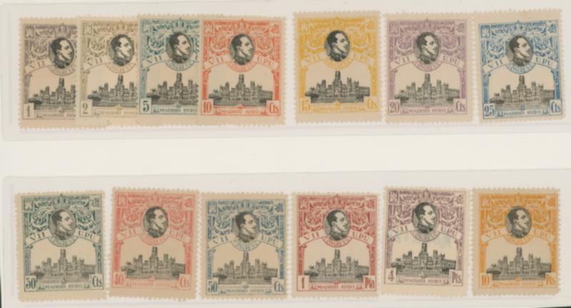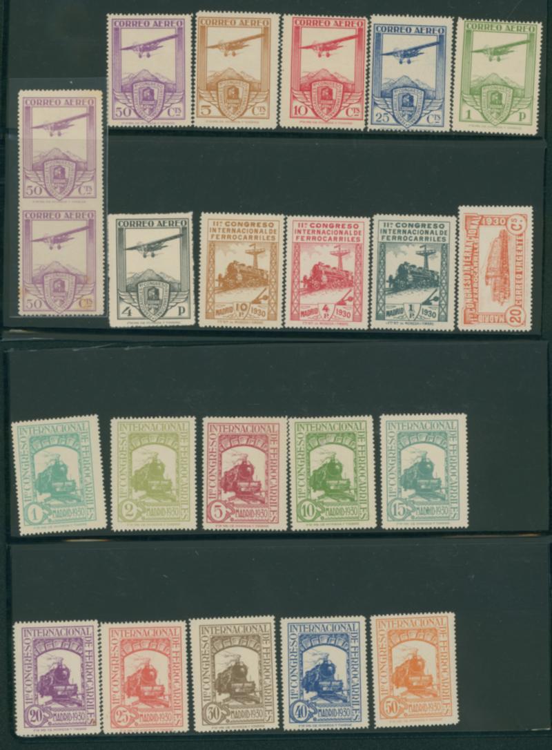 Spain 1930 a set of 20 stamps and a vertical pair of 50c air mail stamps imperf. in-between , 22 stamps unused hinged, catalog value:130,000YEN (Image1)
