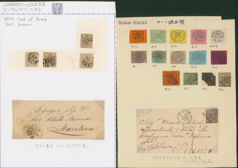 Italy ROMAN STATES 1852-68 0.5b / 10c, Lombardy Venetia 30c , 19 stamps, 1 covers mixed condition of unused and used, (Image1)
