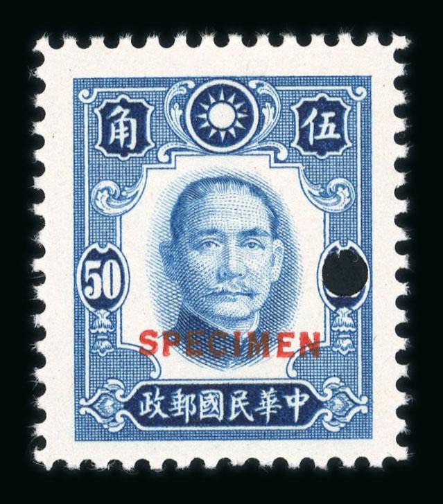 China 1941 Dr Sun Yat-sen short set to 50c., each with red SPECIMEN overprint and small punch hole, ex american Bank note archive, fresh mint never hinged. (Image)