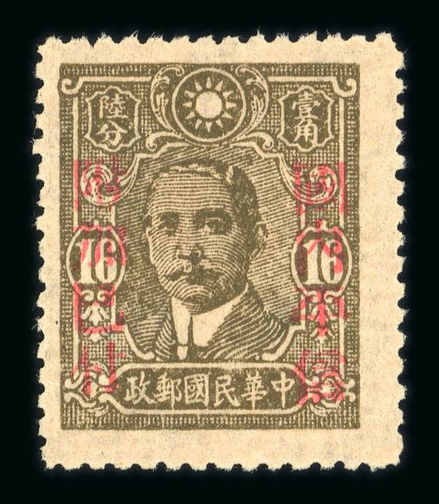 1942 Provincial surcharges on 16c. Sun Yat-sen with red Kansu overprint unused without gum, with 1943 50c re-surcharge for comparison. (Image)