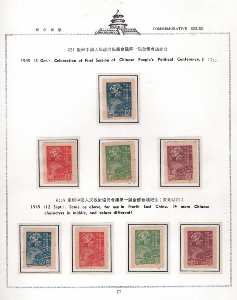 China 1949 Celebration of 1st Session of Chinese People's Political Conference 8 mint stamps (Image)